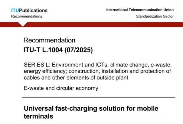 泰尔终端实验室表示,这是ITU首次制定的全球通用快速充电标准。其中方案的最佳实践部分,我国自主创新的快速充电方案作为全球的唯一的案例被推荐。中国通信标准化协会(CCSA)和电信终端产业协会(TAF)的双编号团体标准[T/CCSA668|T/TAF266-2025];[T/CCSA394|T/TAF092-2024]在参考文献中被引用。