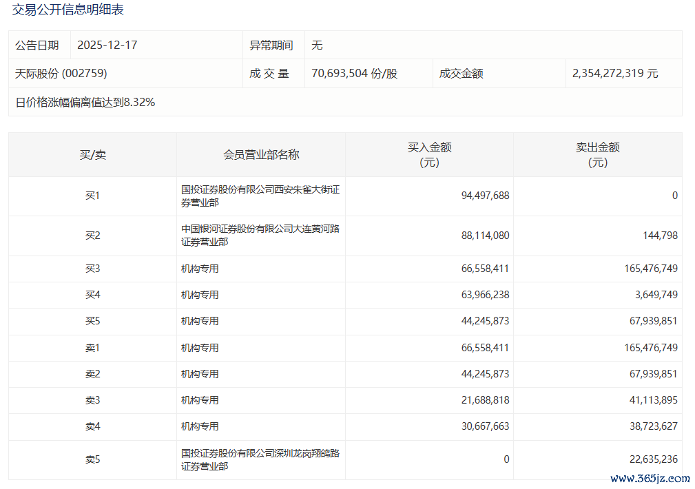 天际股份今日涨停 有4家机构专用席位净卖出1.5亿元天际股份今日涨停 有4家机构专用席位净卖出1.5亿元